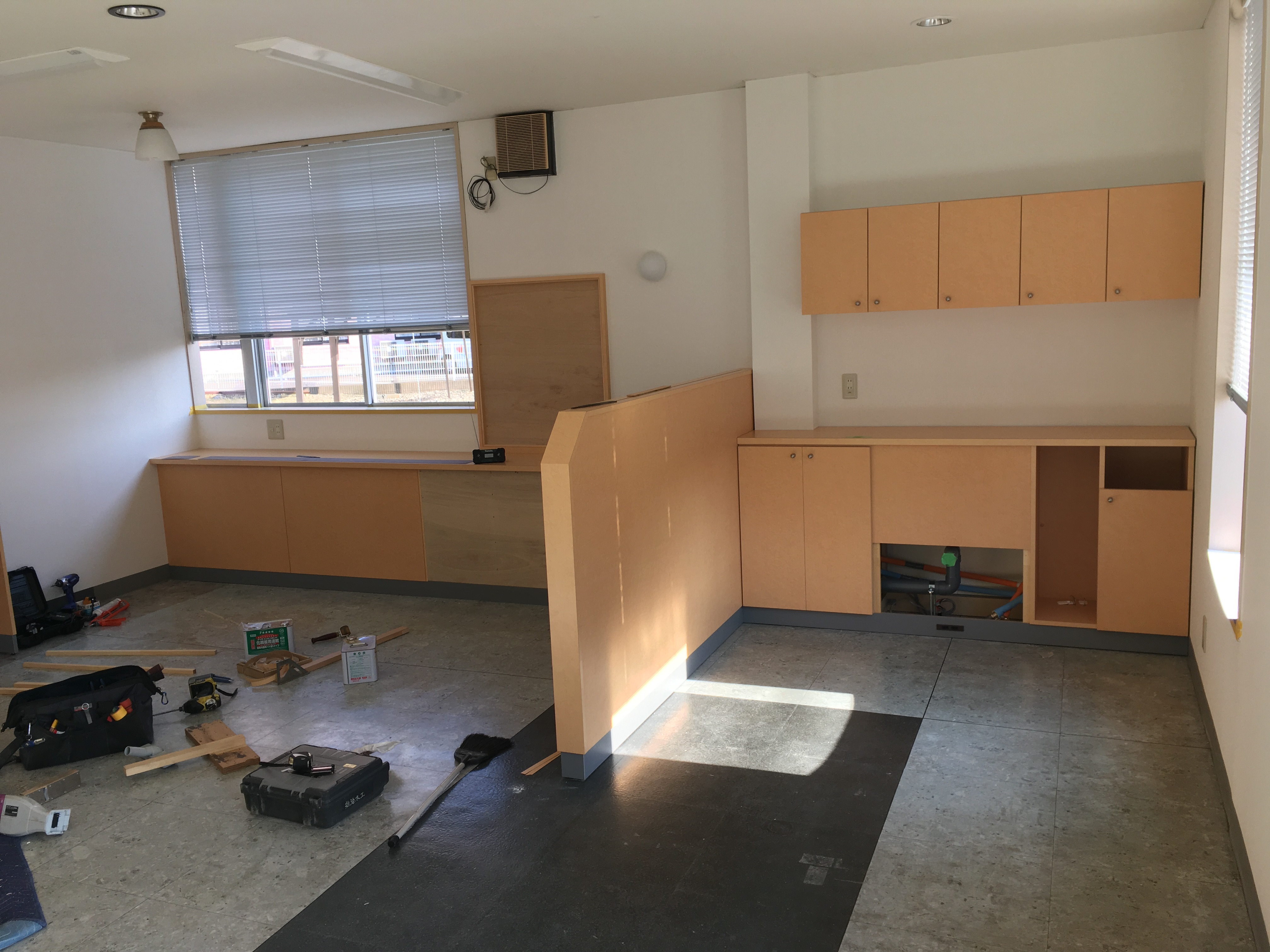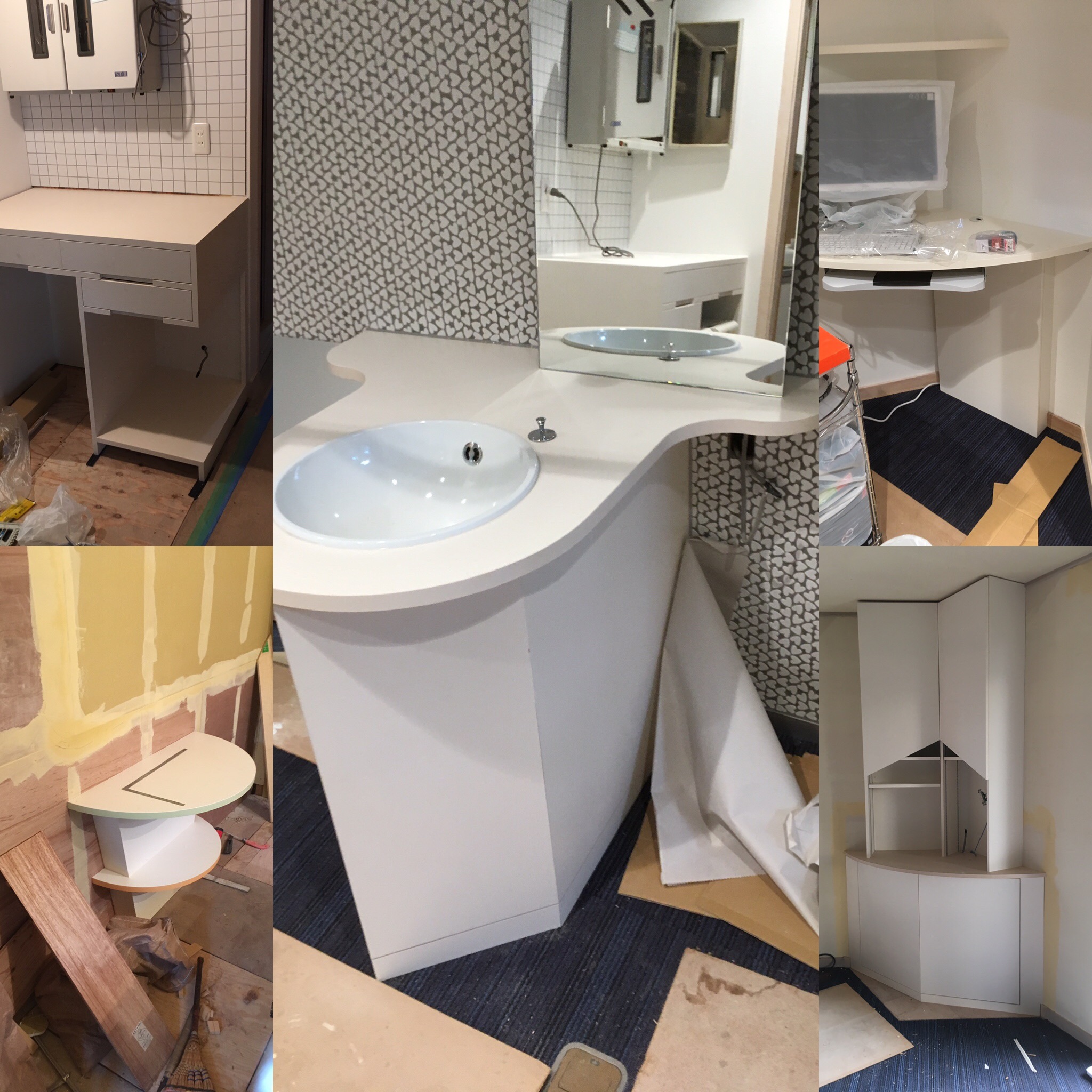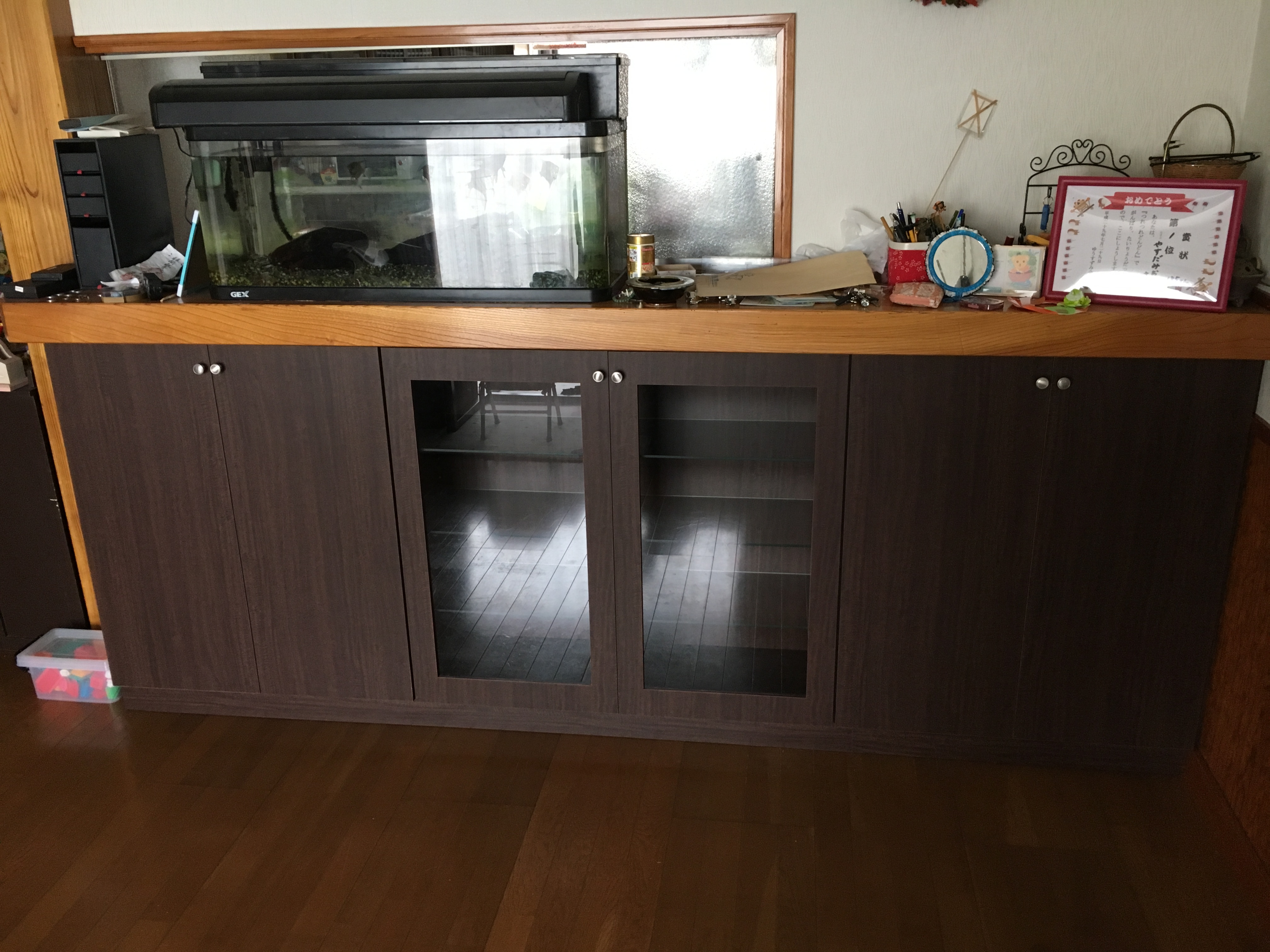 窓からTVの裏側が見えないように窓を塞ぐようにボードを製作設置